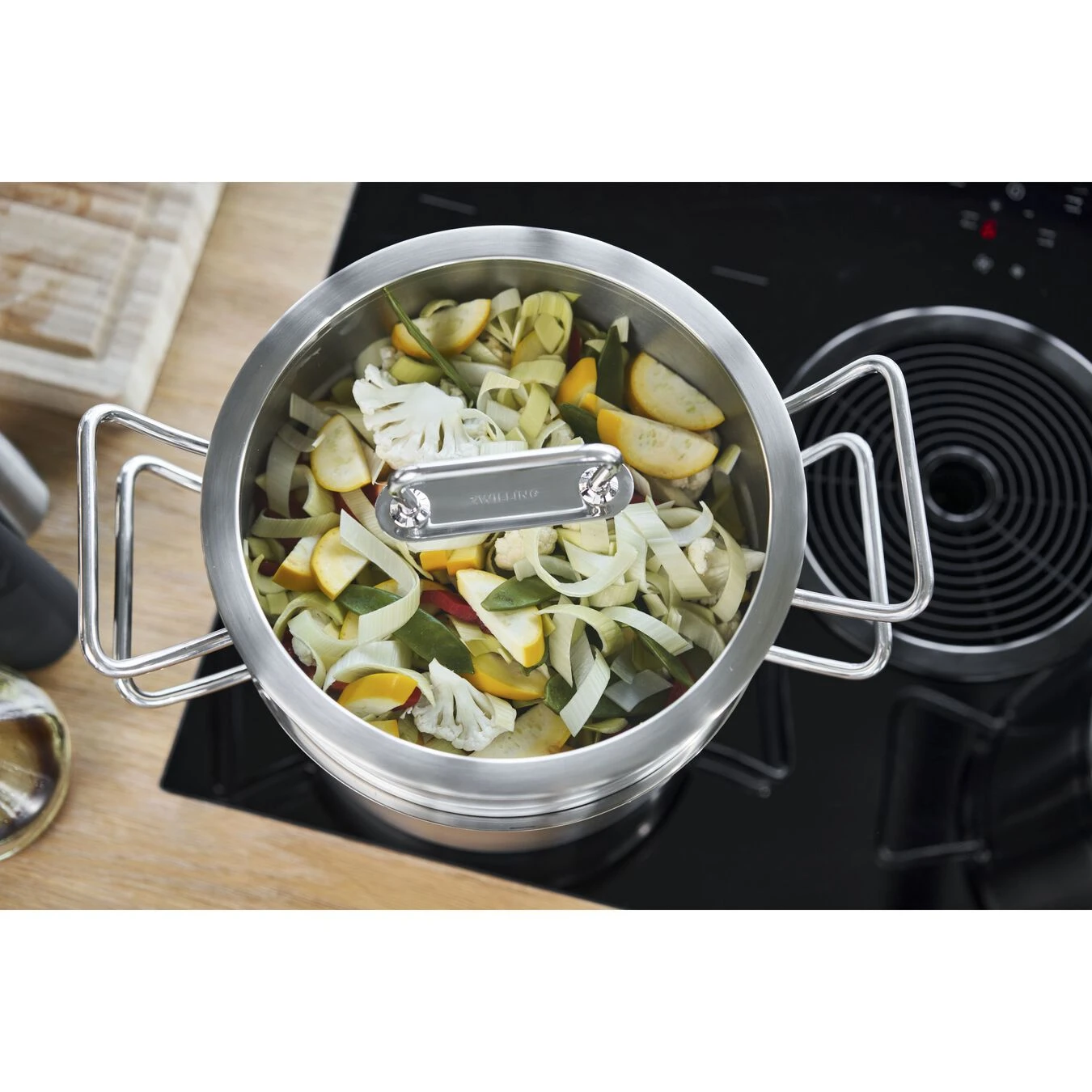 Estamos seguros: si desea convertirse en su propio jefe de cocina, le encantarán los utensilios de cocina de alta calidad de la serie ZWILLING Pro. Porque esta serie marca pautas en cuanto a calidad, variedad y, sobre todo, diseño, que se inspira en los diseños más populares de los cocineros profesionales. Con el inserto de vaporera, cada cacerola se transforma fácilmente en una vaporera y prepara carne, pescado, verduras e incluso postres con especial delicadeza. Los diversos alimentos se colocan simplemente en el inserto de la vaporera y se cocinan al vapor. Nada se puede quemar, se retienen valiosas vitaminas y la carne se vuelve maravillosamente tierna. El práctico accesorio de vapor tiene un diámetro de 24 cm y se adapta a todas las macetas ZWILLING del mismo diámetro. La cesta de vapor es robusta, duradero y especialmente apto para lavavajillas gracias al acabado especial del material. El diseño del vaporizador de acero inoxidable es cautelosamente minimalista y, por lo tanto, parece particularmente profesional.