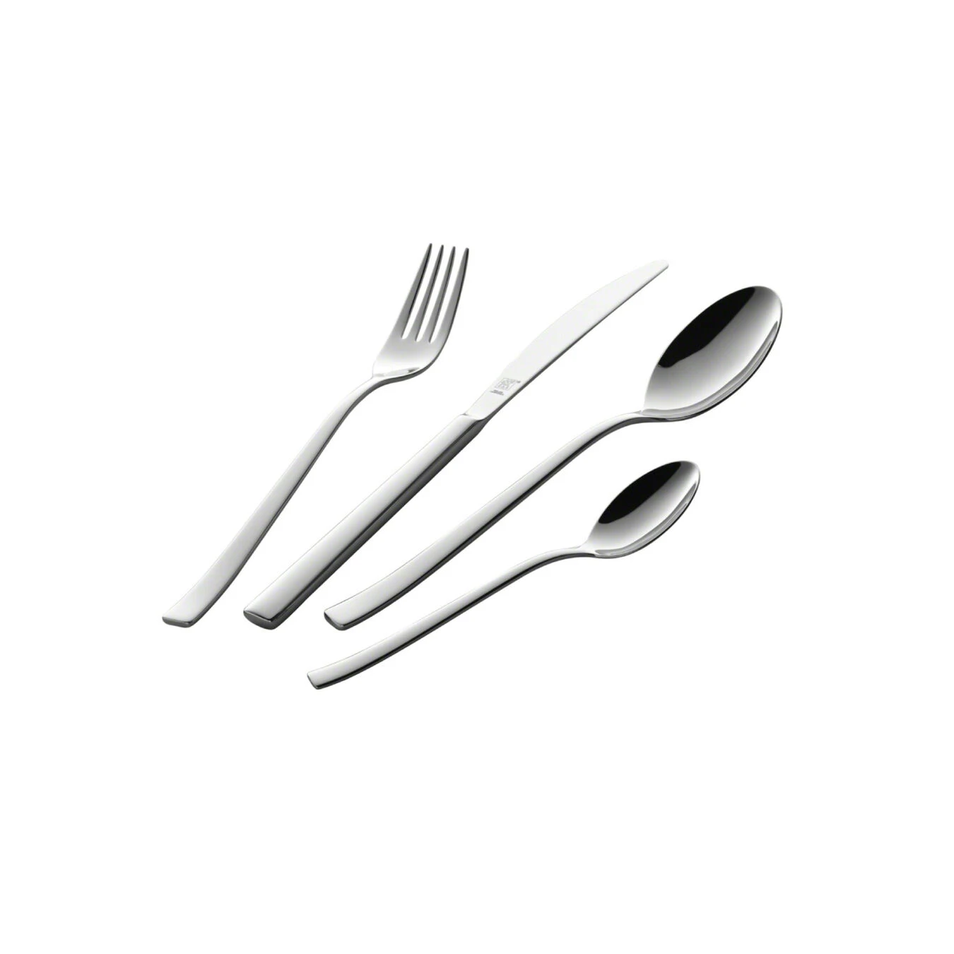 Para que pueda disfrutar de su nuevo juego de cubiertos durante mucho tiempo, los tenedores y cucharas están hechas de acero inoxidable 18/10 y los cuchillos monobloque están hechos de acero de hoja de alta calidad, forjados y endurecidos de una sola pieza. La buena mano de obra de los cubiertos también se refleja en el aspecto.