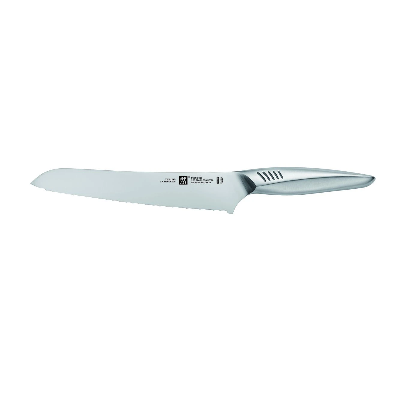 Con el cuchillo de pan de ZWILLING de la serie Twin Fin II puedes cortar pan, baguettes o panecillos sin esfuerzo. Impresiona con su hoja de 20 cm de largo y el borde dentado de doble cara. Incluso las costras de pan crujientes se pueden cortar con facilidad y precisión, para obtener rebanadas limpias que te dan ganas de disfrutar. El mango de forma asimétrica garantiza un manejo seguro gracias a la protección de los dedos y las ranuras antideslizantes y evita que los dedos se resbalen.