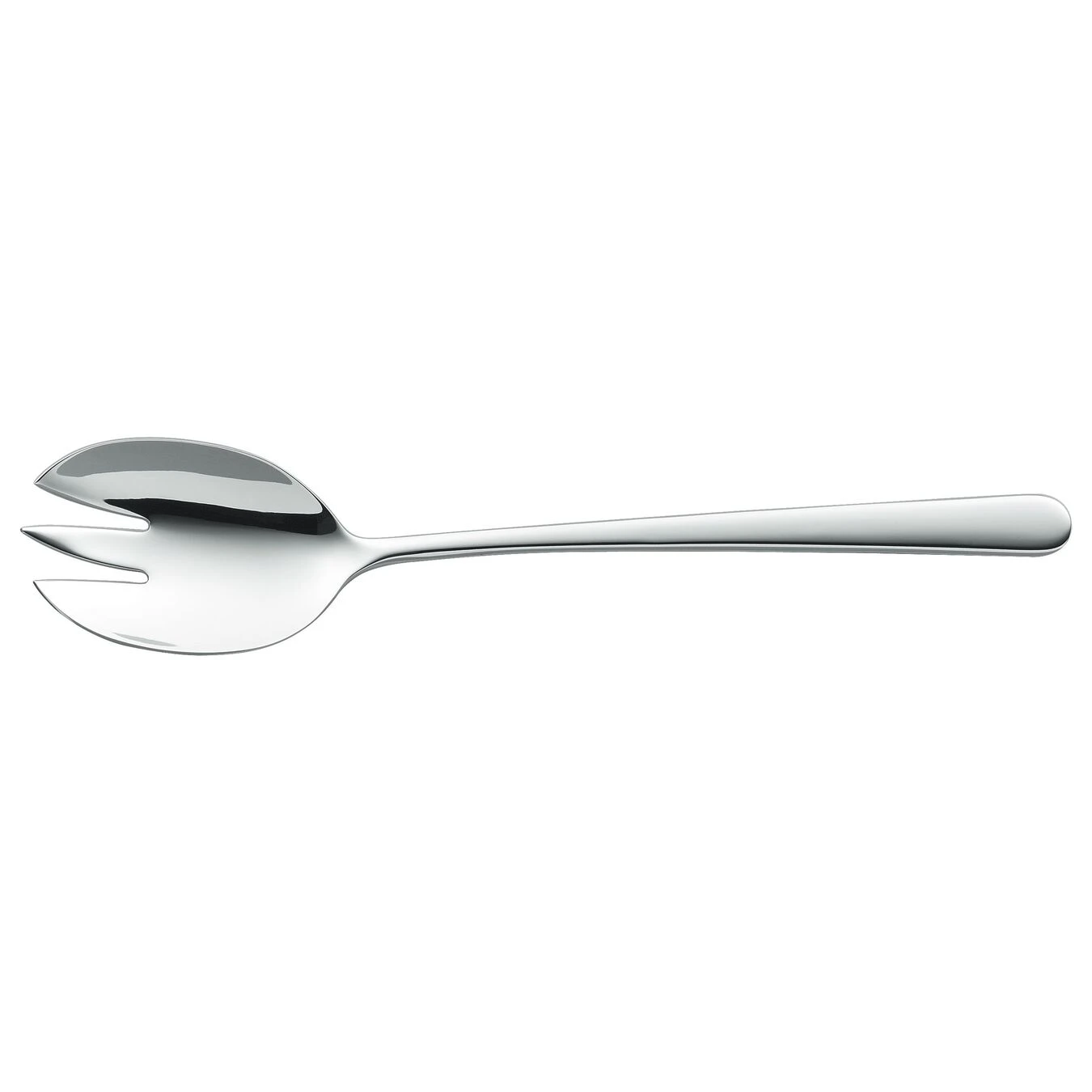 Por su longitud de 22,5 cm, el atractivo tenedor de la serie NOVA es idóneo para boles de gran tamaño. Su cabezal plano permite servir cómodamente la ensalada, mientras que entre los anchos dientes se elimina el exceso de salsa.